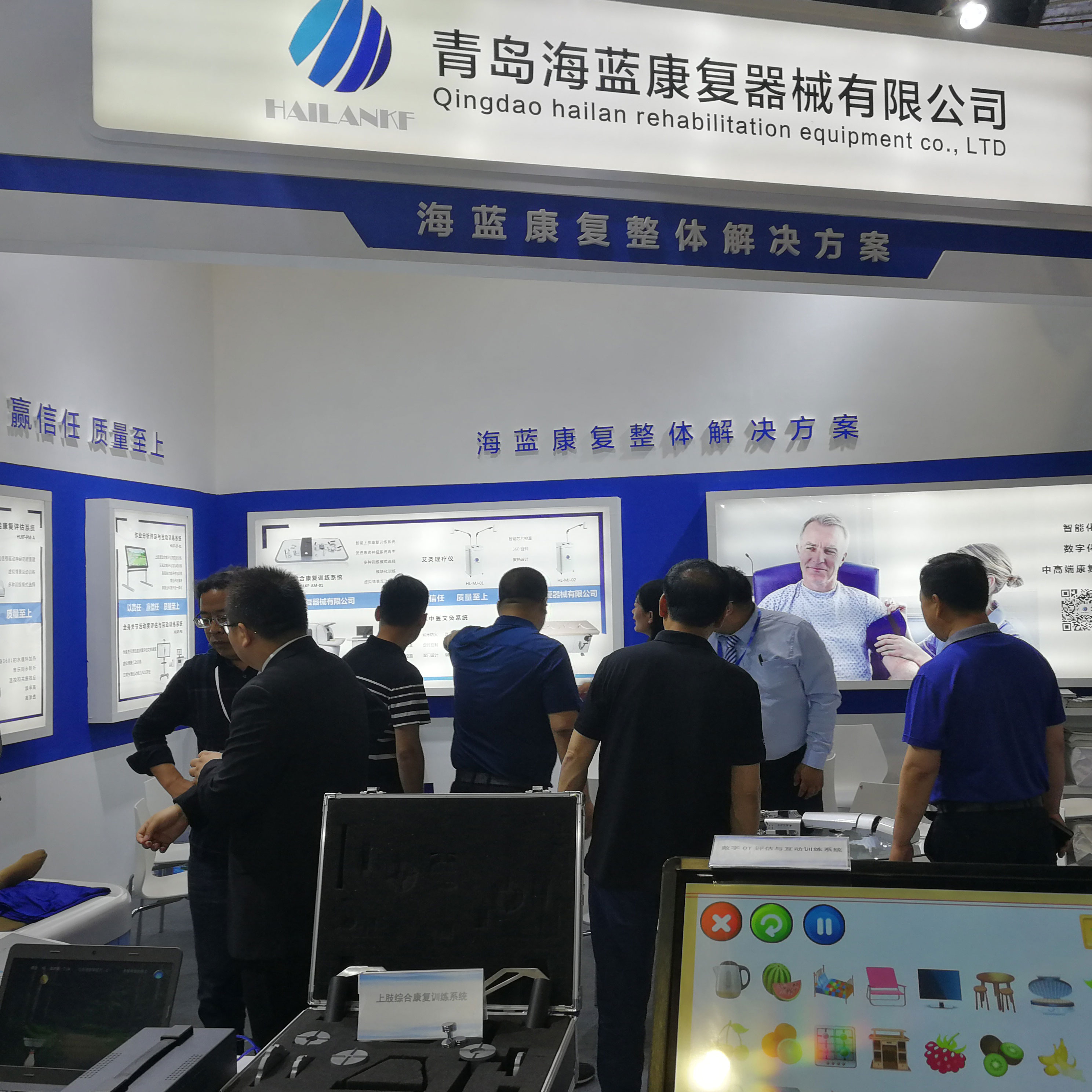 海藍(lán)康復(fù)展位最亮眼的明星還是非“它們”莫屬了。這次展會海藍(lán)康復(fù)的【作業(yè)分析評定與訓(xùn)練系統(tǒng)】、【全身關(guān)節(jié)活動度評估與訓(xùn)練系統(tǒng)】、【神經(jīng)康復(fù)機(jī)械手】、【干式水療床】、【艾灸理療儀】成為全場焦點(diǎn),備受參展嘉賓的關(guān)注與喜愛。