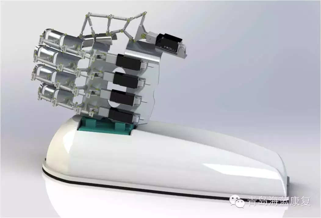 神經(jīng)康復(fù)機械手作為智能外骨骼康復(fù)訓(xùn)練系統(tǒng)的系列產(chǎn)品之一,填補了國內(nèi)主被動手功能訓(xùn)練的空白。該系統(tǒng)通過采集患者大腦運動意識驅(qū)動患側(cè)肢體的sEMG生物電信號,控制機械手上各個關(guān)節(jié)的機械結(jié)構(gòu)運動,使患者實現(xiàn)與機械手共同運動的康復(fù)訓(xùn)練。